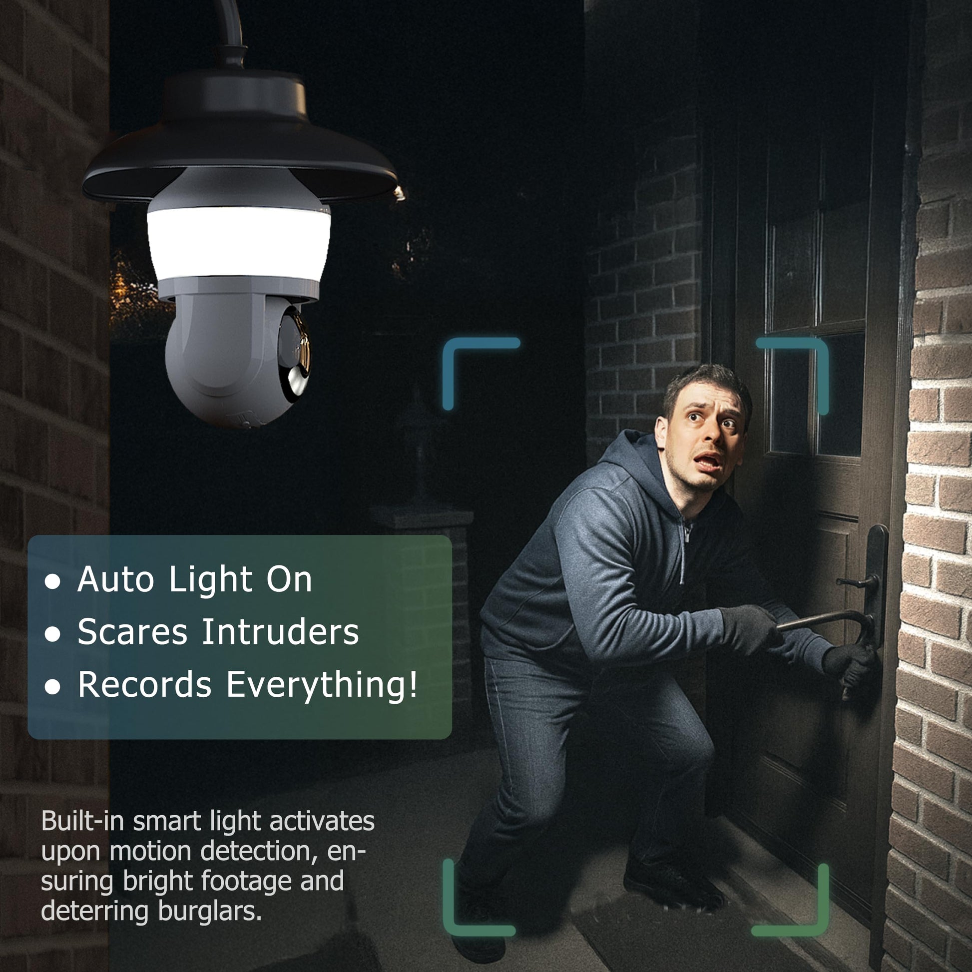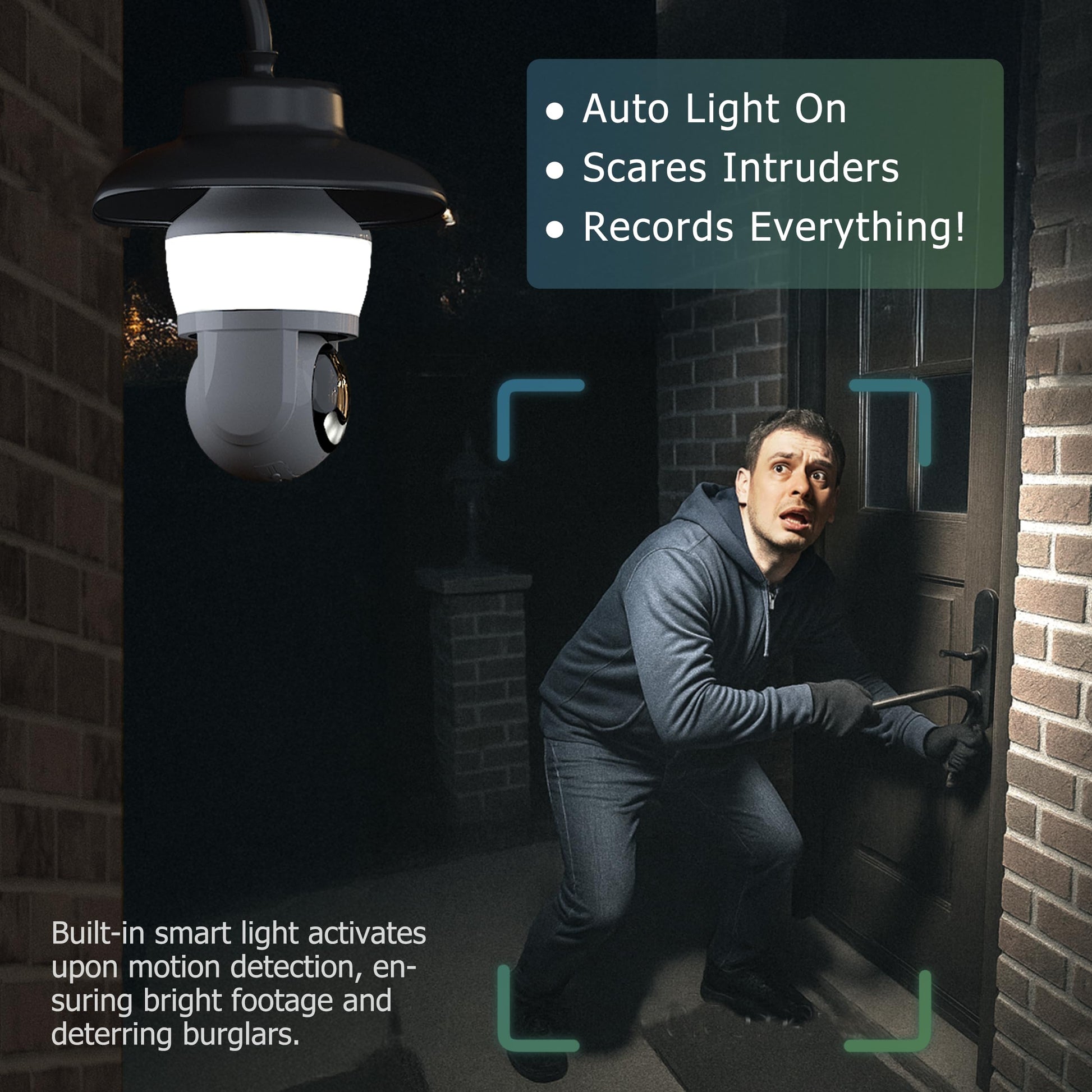 - AI Human Tracking & Real-Time Alerts: AI distinguishes people from false alarms, tracks intruders across 360°, and sends instant phone alerts. Triggers lights and records simultaneously for proactive deterrence.